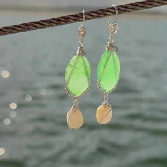 Hand-cut Chrysoprase & Baroque Pearl Sterling Silver Earrings // Ray of Sunshine Jewellery